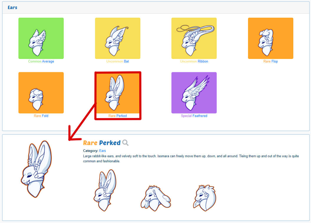 - Visual Isomara Trait Index - You can select a trait to view information and additional example images.