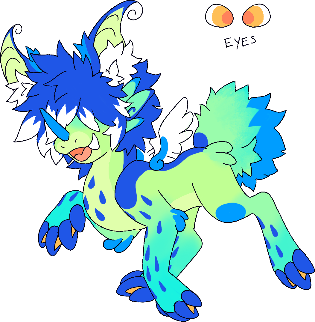 Rainbase (Rain for short) loves the ocean. Often sunbathing down on the shore, Rain is the definition of relaxed. Still uncoordinated on their feet, they dream of riding the water... they just don't know how. They keep their blepper Breezy in tow and are often seen in the company of Tack